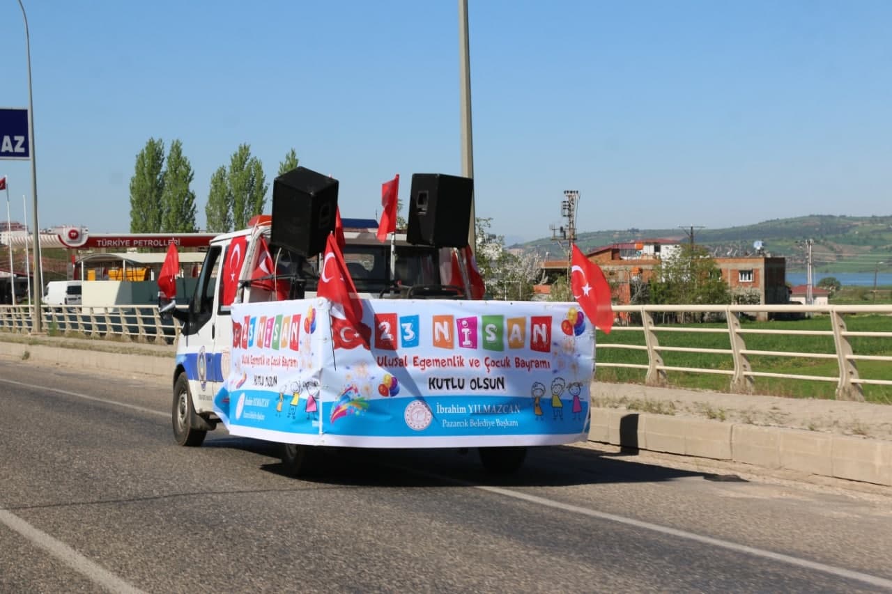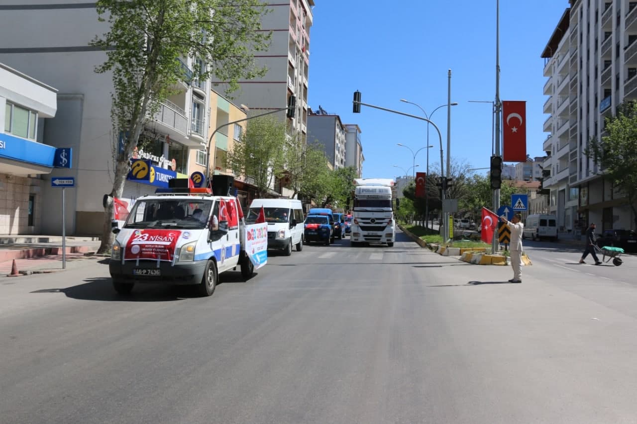 Kahramanmaraş’ın Pazarcık İlçesinde jandarma ve belediye ekipleri, 23 Nisan Ulusal Egemenlik ve Çocuk Bayramına özel konvoy düzenledi.