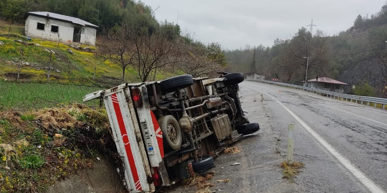 Edinilen bilgiye göre, sürücüsünün ismi öğrenilemeyen 31 ALM 68 plakalı kamyonet Andırın-Kadirli yolu üzerinde seyir halinde iken sağanak yağış nedeniyle kontrolden çıkarak devrildi.