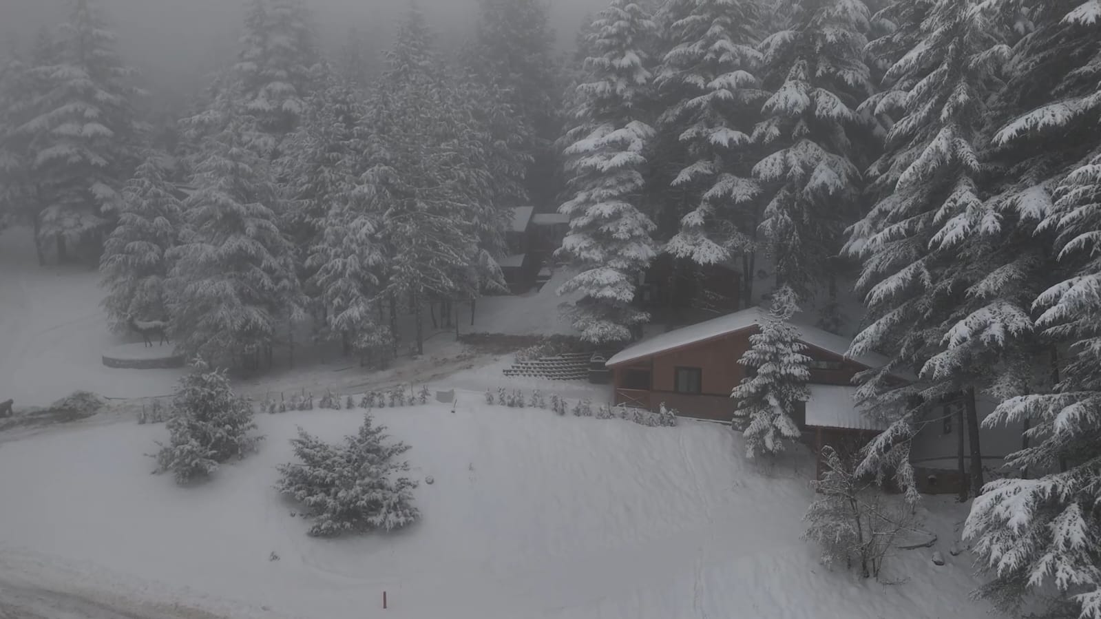 1800 rakımlı Başkonuş Yaylasında ise sedir ve gürgen ağaçlarının üzerini kaplayan kar, sisle birleşerek görsel bir şölen sundu.
