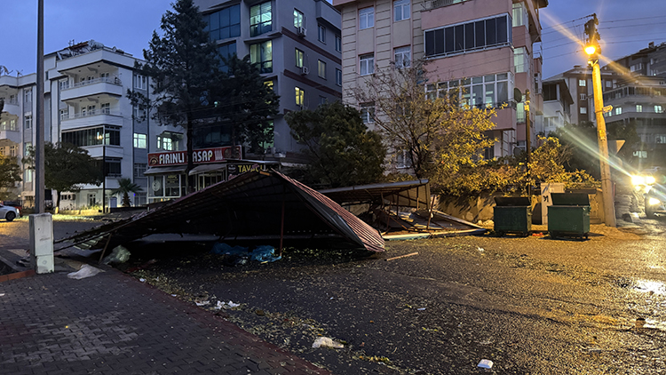 Onikişubat ilçesinde Süleymanşah Mahallesi'nde fırtına nedeniyle ağaç yola devrildi.