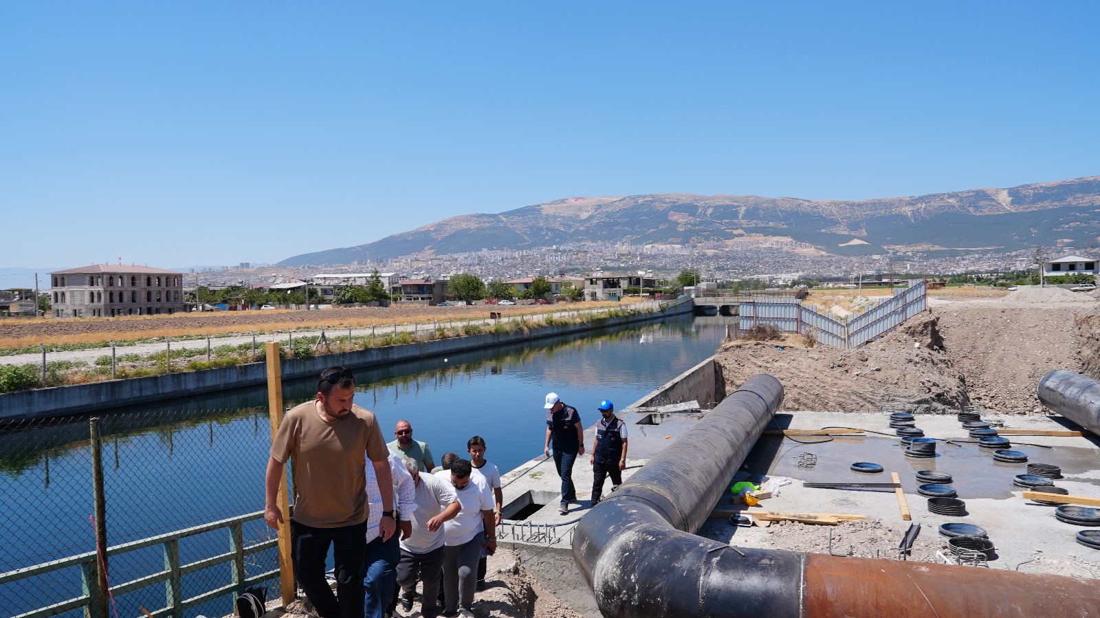 Kahramanmaraş’ta içmesuyu temininde sürdürülen altyapı çalışmaları kapsamında Kılavuzlu İletim Hattı Projesi hız kesmeden devam ederken, Kahramanmaraş Büyükşehir Mahalle Muhtarları Dernek Başkanı ve Divanlı Mahalle Muhtarı Atilla Erimhan öncülüğündeki bir heyet, çalışmaları yerinde inceledi. Heyette; Sakarya Mahalle Muhtarı Resul Karademir, Yeşiltepe Mahalle Muhtarı Veysal Us, Namık Kemal Mahalle Muhtarı Muhammet Yetişmiş, Sümer Mahalle Muhtarı Ökkeş Poyraz, Sarıkaya Mahalle Muhtarı Ashabil Gül, Kurtuluş Mahalle Muhtarı Çetin Seçgin, Eyüp Sultan Mahalle Muhtarı Ali Engizek ve Şıh Turan Mahalle Muhtarı Mustafa Kantarcılar da yer aldı. İnceleme gezisi kapsamında muhtarlar, çalışmaların geldiği son duruma ilişkin teknik ekiplerden detaylı bilgiler aldı.