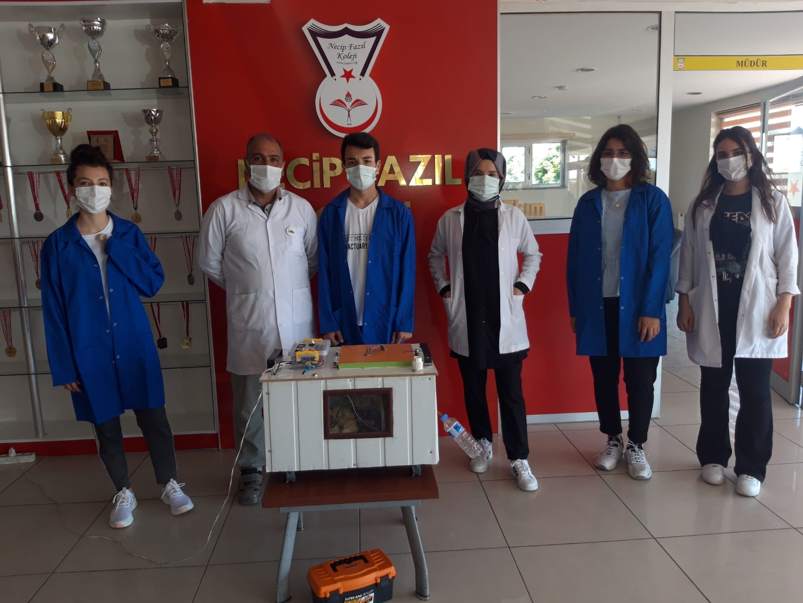 Özel Necip Fazıl Mesleki Teknik Anadolu Lisesi 10. sınıf öğrencisi Kardelen Çelik yaptığı açıklamada, “Tema başkanı Abdurrahman Bey in okulumuzda başlattığı sıfır atık projesi kapsamında kâğıt, plastik şişe, pil gibi geri dönüşüm malzemelerini geri dönüşüm kutularına koymanın dışında ne yapılabiliriz şeklinde internette araştırmam oldu. Araştırmalarım sonucunda yine bir teknik lise öğrencilerinin bizim gibi kuluçka makinası yaptığını gördüm. Bizde buna benzer bir çalışmayı başlattık. Yaklaşık bir ay zamanımızı aldı ve 3 arkadaş olarak bu çalışmayı yaptık” dedi.
