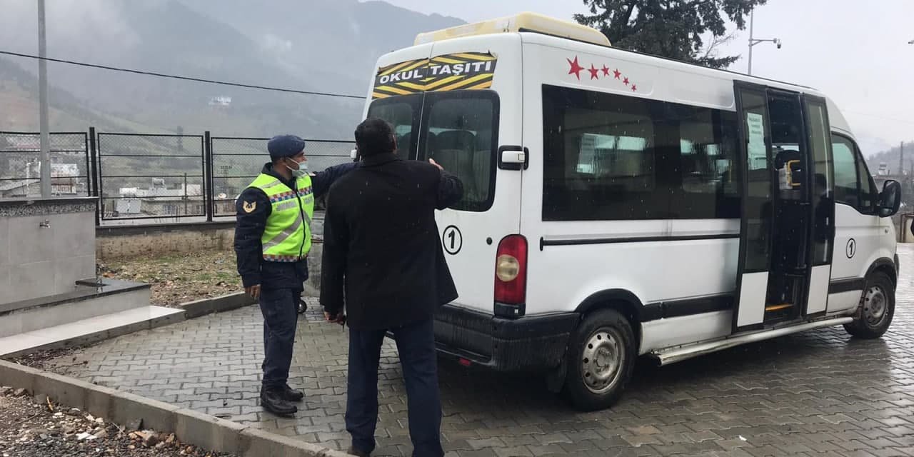 Alınan bilgilere göre, İl Jandarma Komutanlığı sorumluluk sahasında bulunan okullara öğrenci taşıyan okul servis araçlarına yönelik denetimlerde, trafik kuralları başta olmak üzere, korona virüs (Covit-19) kuralları kontrol edildi.