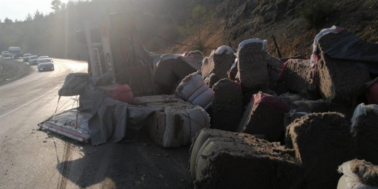 Kahramanmaraş’ta pamuk yüklü tır yan yattı
