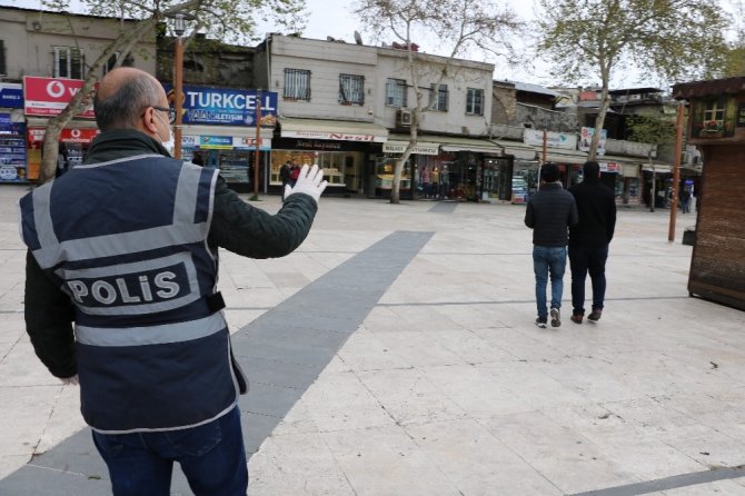 Kahramanmaraş İl Emniyet Müdürlüğü ekipleri, korona virüs önlemleri kapsamında vatandaşları bilgilendiriyor. Ekipler, kent merkezinde yaşlı ve grup halinde gezen vatandaşları salgın hastalığa karşı evlerine dönmeleri konusunda uyarıyor.