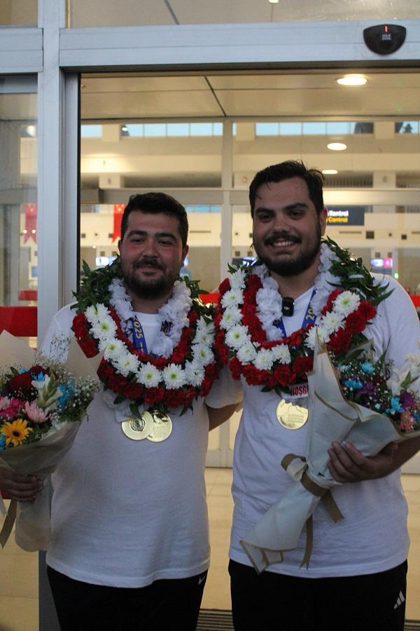 Kahramanmaraş Havaalanında karşılanan Avrupa Ateşli Silahlar ve Plak Atışları Şampiyonası’nda, genç erkekler skeet trio kategorisinde Madalya kazanan Muhammet Seyhun Kaya, Ali Can Arabacı karşılamadan dolayı çok mutlu olduğunu ve yarışmalarda soğuk kandı davranarak Türk Bayrağını gönlere çektirmenin haklı gururunu yaşadıklarının altını çizdiler.