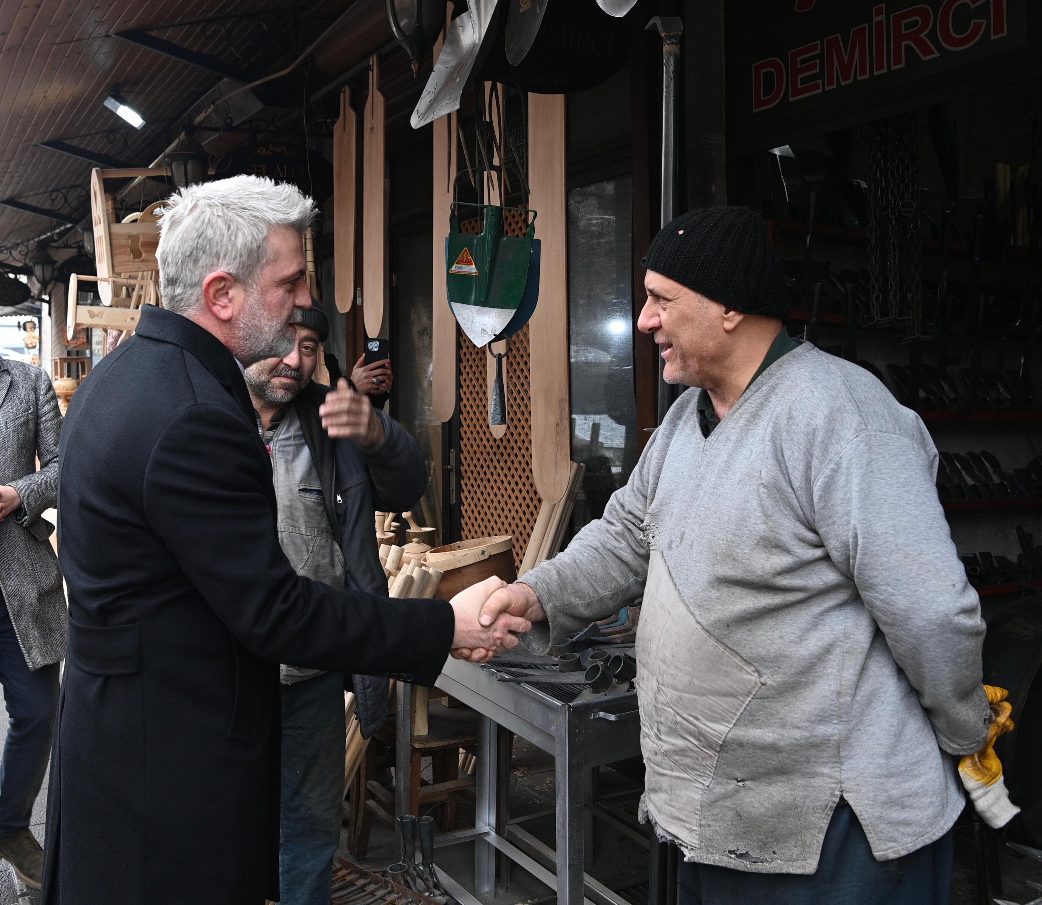 Başkan Görgel, çarşı esnafına hayırlı işler dileklerini iletirken, vatandaşlarla da samimi sohbetler gerçekleştirdi. 6 Şubat depremlerinde zarar gören bölgeler arasında yer alan Demirciler Çarşısı’nın geleceğine ilişkin önemli açıklamalarda bulunan Başkan Görgel, çarşıda hasar alan 75 iş yerinin Çevre, Şehircilik ve İklim Değişikliği Bakanlığı tarafından aslına uygun şekilde yeniden restore edileceğini ifade etti. Bu kapsamda esnaflarla görüş alışverişinde bulunan Görgel, yapılacak çalışmaların bölgenin tarihi dokusuna ve işlevselliğine uygun olacağının altını çizdi. Ziyaret sırasında Başkan Görgel’i büyük bir ilgiyle karşılayan çarşı esnafı, projeye desteklerini dile getirdi.