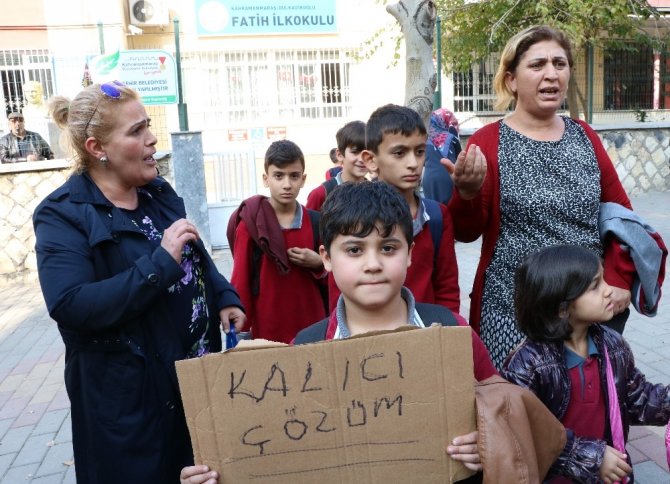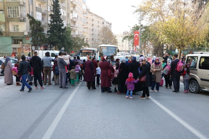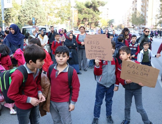Dulkadiroğlu ilçesi Fatih İlkokulu'nda eğitim gören öğrencilerin velileri trafik akışının yoğun olduğu Zübeyde Hanım Bulvarı'nda çocuklarıyla birlikte eylem yaptı.