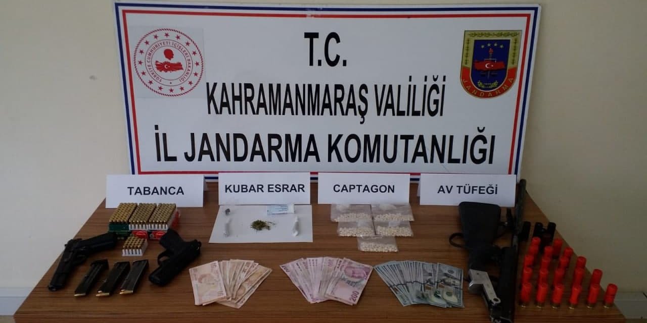 Alınan bilgilere göre; KOM Şube Müdürlüğü ve Narlı Jandarma Komutanlığı ekipleri, takibe aldığı otomobile Çimko yol kontrol ve arama noktasında operasyon yaptı. Otomobilde yapılan aramada 519 adet Captagon Hap, 7 gram kubar esrar, 3 gram plaka esrar ve ruhsatsız 1 adet 9 mm tabanca, 1 adet 7,65 mm tabanca, 1 adet av tüfeği, 169 adet 9 mm tabanca fişeği, 30 adet 7,65 mm tabanca fişeği, 25 adet av tüfeği fişeği ile birlikte suçtan elde edildiği değerlendirilen 11.620 TL ile 2.600 ABD doları ele geçirildi. Jandarma ekipleri tarafından gözaltına alınan Ö.Ç (44) alınan ifadesinin ardından sevk edildiği adli makamlarca tutuklanarak cezaevine konuldu.