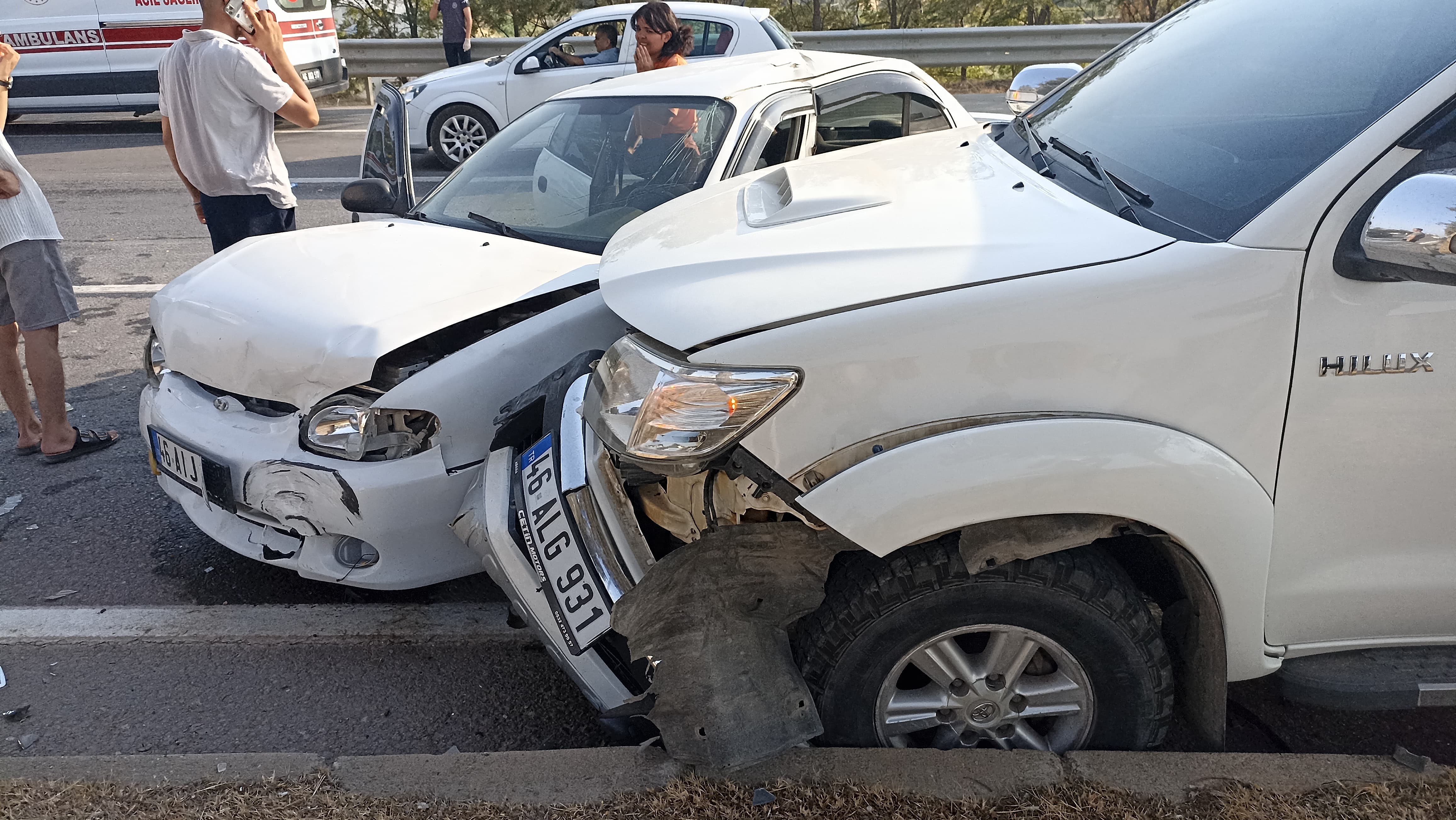 Çarpışmanın etkisiyle araçlarda bulunan 3’ü kadın 4 kişi yaralandı.