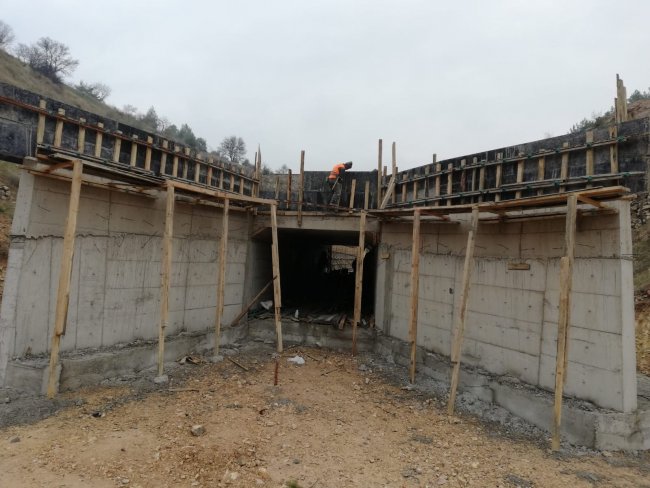 Onlarca iş makinesinin çok hızlı bir şekilde bölgede birkaç yerde çalıştığı Kuzey Çevre Yolu’nda bir taraftan yol açma, bir taraftan kayaların kırılması devam ederken bir taraftan da cephe duvar betonları dökülüyor ve kutu menfezleri konuluyor.