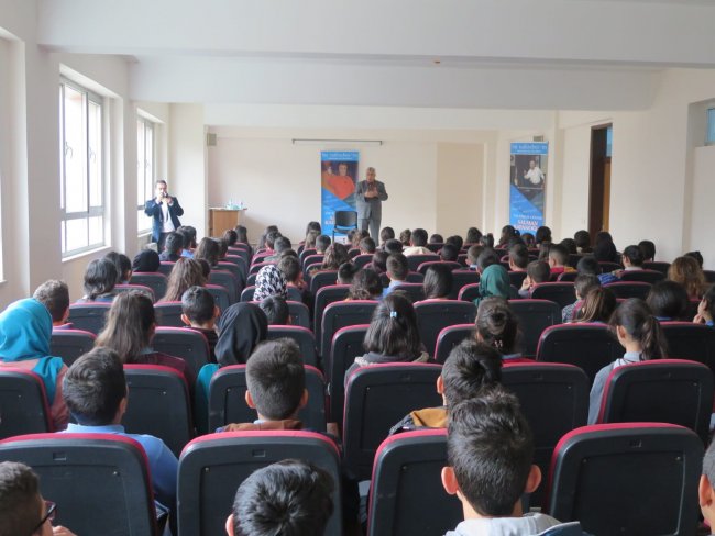 Nurhak, Ekinözü ve Elbistan ilçelerindeki okullarda verilen eğitimlerde sahne alan Salman Kapanoğlu, kullandığı mizahi bir dille öğrencilere Kasım ayının değeri olan tutumluluk üzerine eğitimler veriyor.