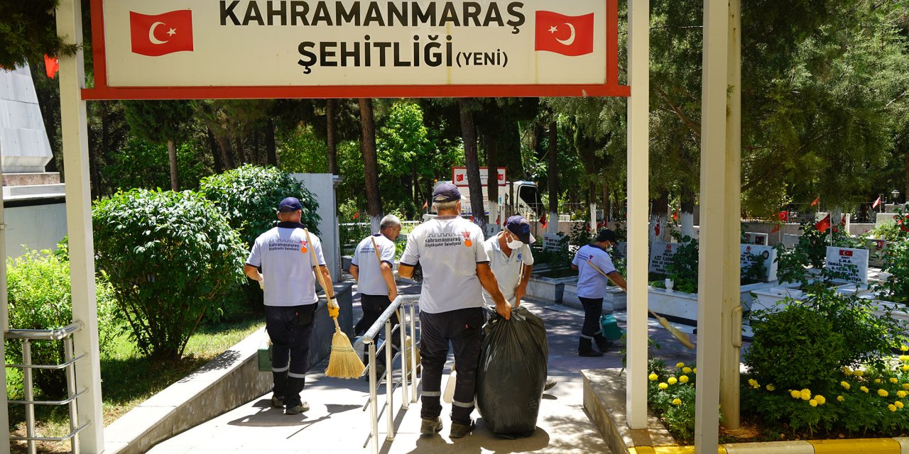 Kahramanmaraş Büyükşehir Belediyesi, kent genelinde bayram hazırlıklarını sürdürüyor. Kurban Bayramı’na sayılı günler kala şehitlik ve mezarlıklarda temizlik çalışmaları da yoğunlaştırıldı. Çevre Koruma ve Kontrol Daire Başkanlığı koordinesinde yürütülen çalışmalarla, özel gün ve bayramlarda en sık ziyaret edilen mekânlardan Şeyhadil Kent Mezarlığı başta olmak üzere birçok alan temizlendi. Titizlikle gerçekleştirilen çalışmalarda defin alanları temizlenirken, çevredeki evsel ve ambalaj atıkları da toplanarak bertaraf edildi.