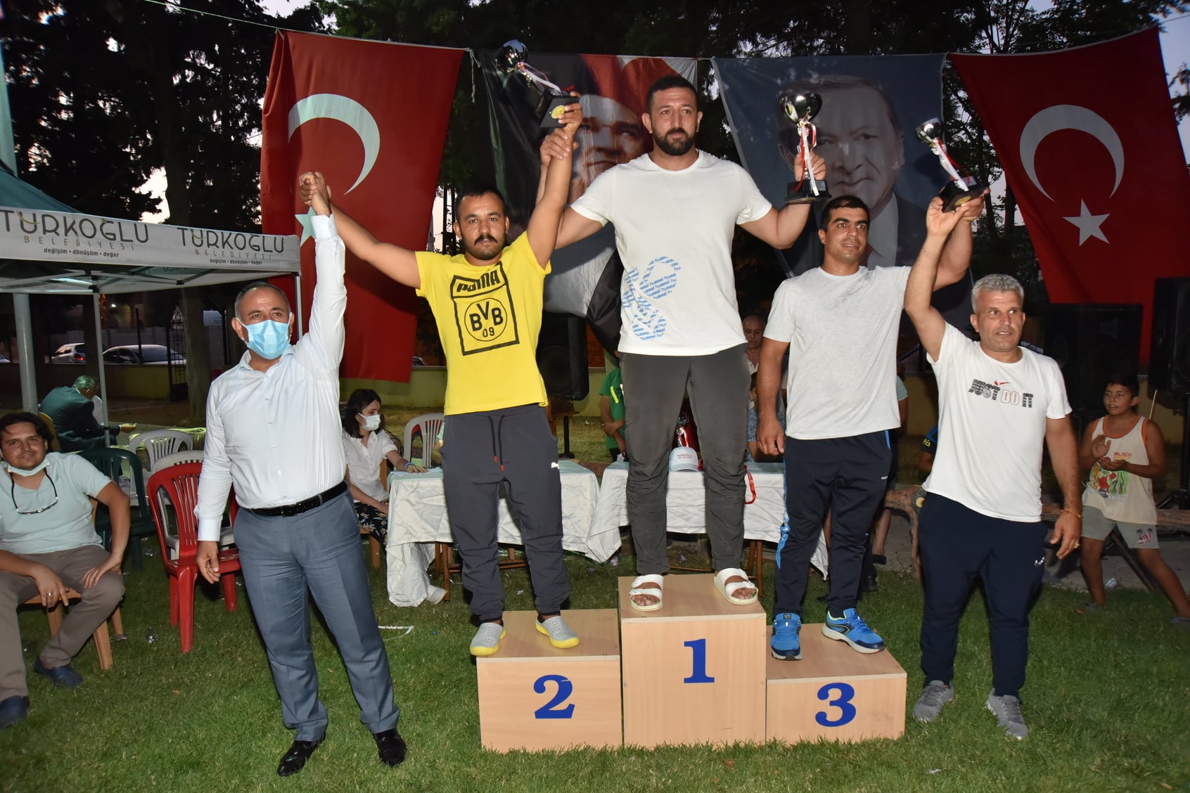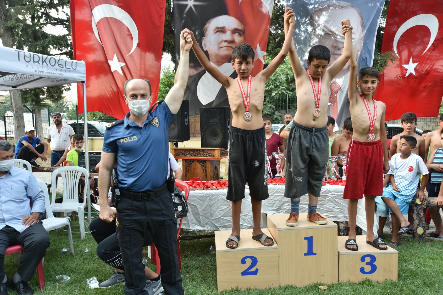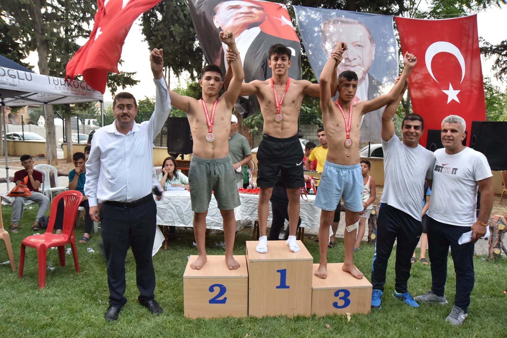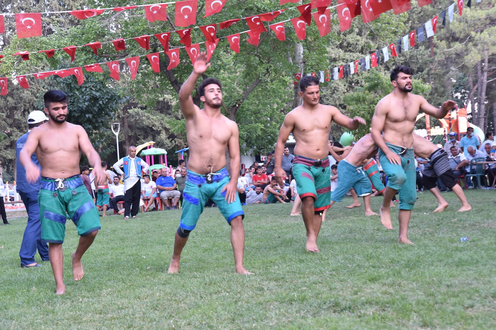 15 Temmuz Demokrasi ve Milli Birlik Günü Şalvar Güreş festivaline Vali Yardımcısı Kaymakam Vekili Mahmut Hersanlıoğlu, Türkoğlu Belediye Başkanı Osman Okumuş, AK Parti Türkoğlu İlçe Başkanı Feyzettin Okumuş, kurum amirleri, sporcular ve vatandaşlar katıldı.