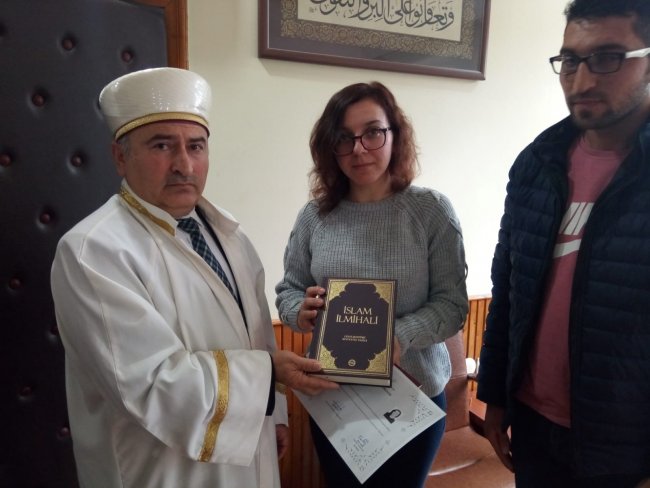 Tören sonunda İlçe Müftüsü Abdullah Rencber tarafından Lıudmyla Barabash’ a Kur’an-ı Kerim ve İslam İlmihali hediye edildi.