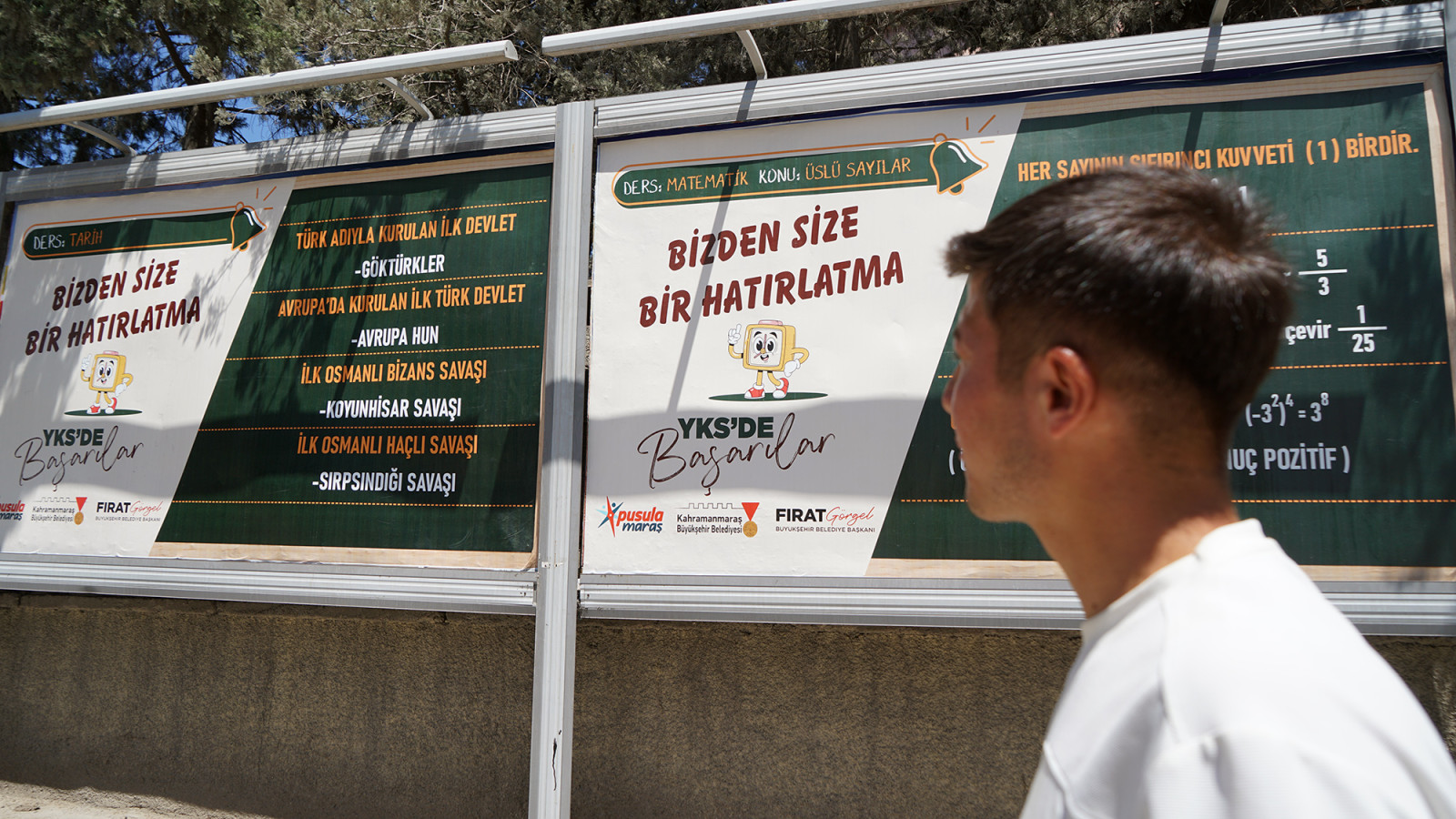 Eğitimden sanata, spordan kültüre geniş bir yelpazede sunduğu desteklerle gençlerin gelişimine ve potansiyellerini tam anlamıyla ortaya koymalarına olanak tanıyan Kahramanmaraş Büyükşehir Belediyesi, 21 ve 22 Haziran tarihlerinde gerçekleştirilecek Yükseköğretim Kurumları Sınavı (YKS) öncesi öğrencilerin son tekrarlarını keyifli hale getirmeleri için açık hava reklam alanlarını sınavlara yönelik kısa ve öz bilgi notlarıyla donattı. Türkçeden matematik ve fen bilimlerine, geometriden sosyal bilgilere kadar birçok dersten özenle seçilen kritik konu başlıkları, üniversite adaylarının günlük yaşamlarında sıklıkla karşılaştıkları noktalara yerleştirildi.