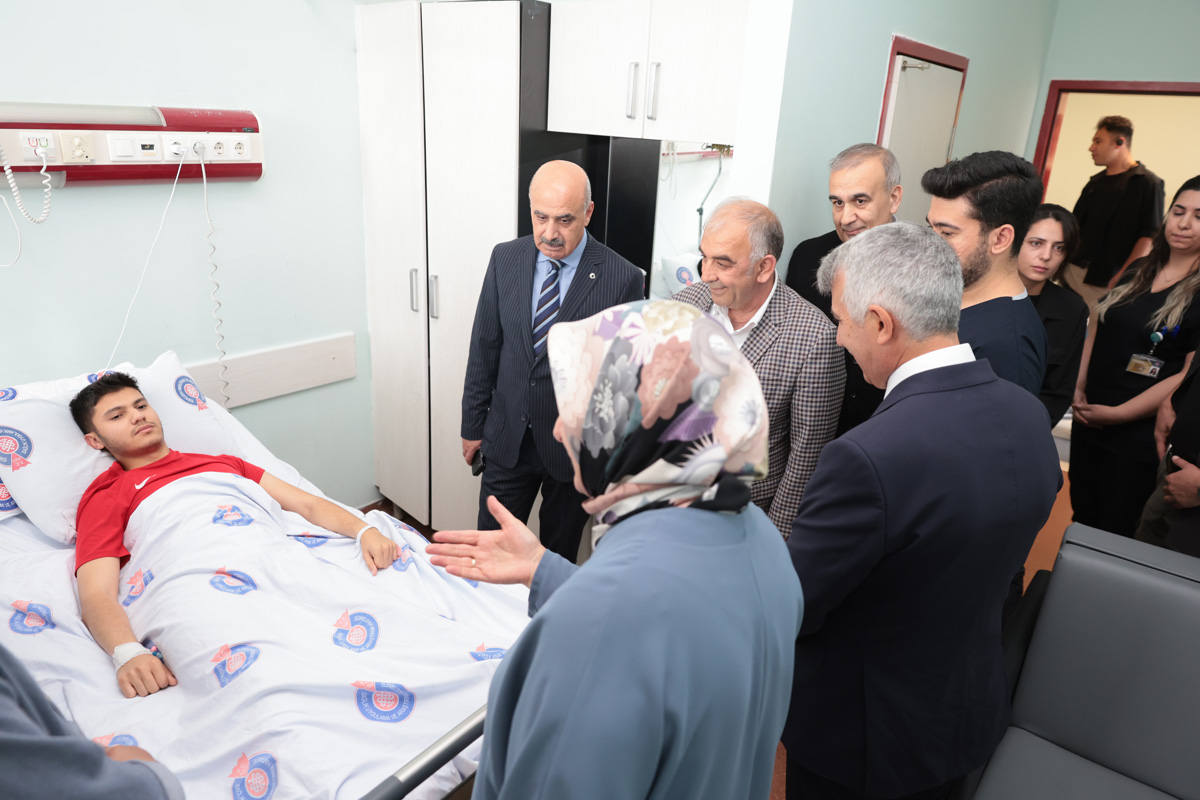 Gazimiz Karaoğlan ve ailesine geçmiş olsun dileklerinde bulunan Vali Ünlüer, sağlık durumu hakkında Doktorundan bilgi aldı.