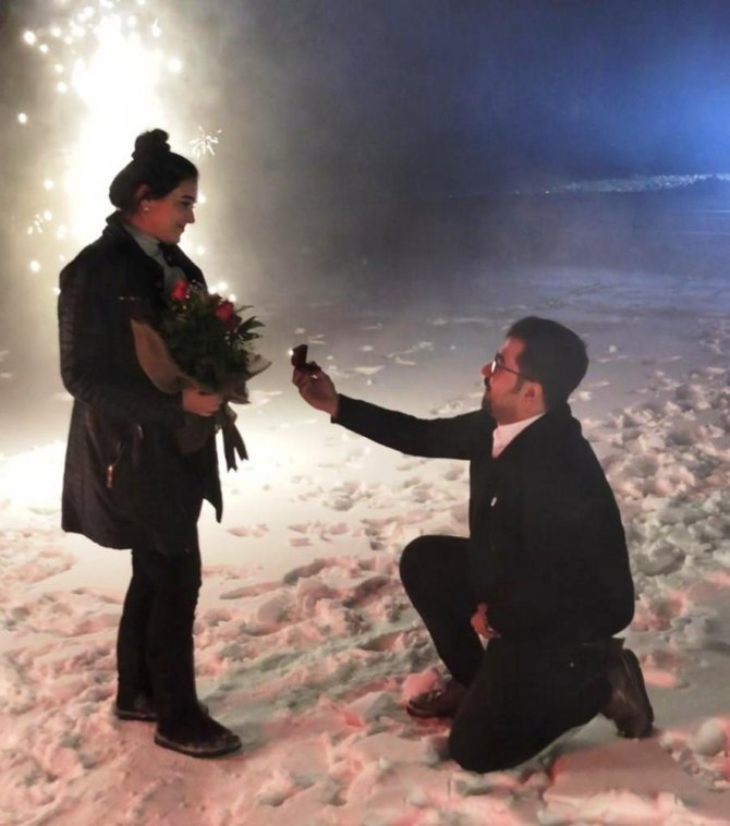 Kahramanmaraş'ta yaşayan ilaç mümessili Fatih Kaan, 1 yıldır arkadaşlık yaptığı Büşra Menteşe'ye kent merkezine 20 kilometre uzaklıkta bulunan Ahir Dağı'nda evlilik teklifi yaptı. Kahramanmaraş'ın yüksek kesimlerine yağan mevsimin ilk karını fırsat bilen Kaan, arkadaşlarının da desteğiyle kar üzerinde yakılan meşaleler ve açılan pankartla kız arkadaşına evlenme teklifli yaptı. Şaşkınlığını gizleyemeyen Büşra Menteşe, erkek arkadaşının teklifini kabul etti. Dağın zirvesinde yapılan evlilik teklifi, Kaan'ın arkadaşları tarafından cep telefonu kamerasıyla görüntülendi.