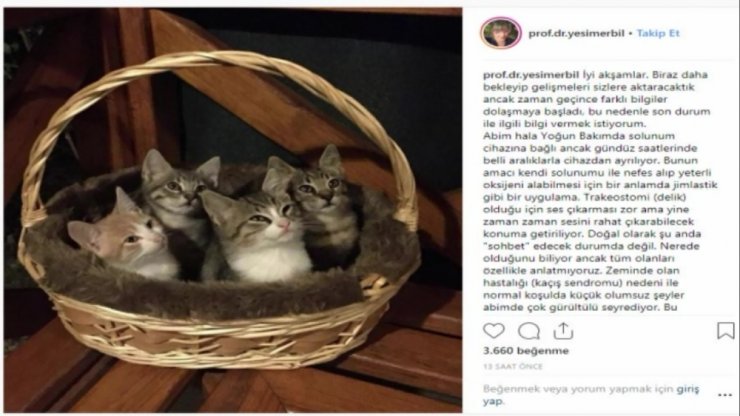 Yeşim Erbil, sosyal medya üzerinden yaptığı yazılı açıklamada: "Ağabeyim hala yoğun bakımda solunum cihazına bağlı ancak gündüz saatlerinde belli aralıklarla cihazdan ayrılıyor. Bunun amacı kendi solunumu ile nefes alıp yeterli oksijeni alabilmesi için bir anlamda jimnastik gibi bir uygulama. Trakeostomi (delik) olduğu için ses çıkarması zor ama yine zaman zaman sesini rahat çıkarabilecek konuma getiriliyor. Doğal olarak şu anda "sohbet" edecek durumda değil. Nerede olduğunu biliyor ancak tüm olanları özellikle anlatmıyoruz. Zeminde olan hastalığı (kaçış sendromu) nedeni ile normal koşulda küçük olumsuz şeyler ağabeyimde çok gürültülü seyrediyor. Bu nedenle ilerleme kaydederken bazen biraz geriye gidebiliyoruz. Sık sık bilgi paylaşmamamızın nedeni ilerleme kaydederken geri gidiş de olabilmesi. Ağabeyim kedileri çok sever, biz de sizler gibi böyle bekliyoruz güzel gelişmeleri. Henüz tam olarak "tamam iyileşti" diyemiyoruz" ifadelerini kullandı.