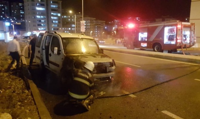 Kahramanmaraş’ta park halindeki araç yandı