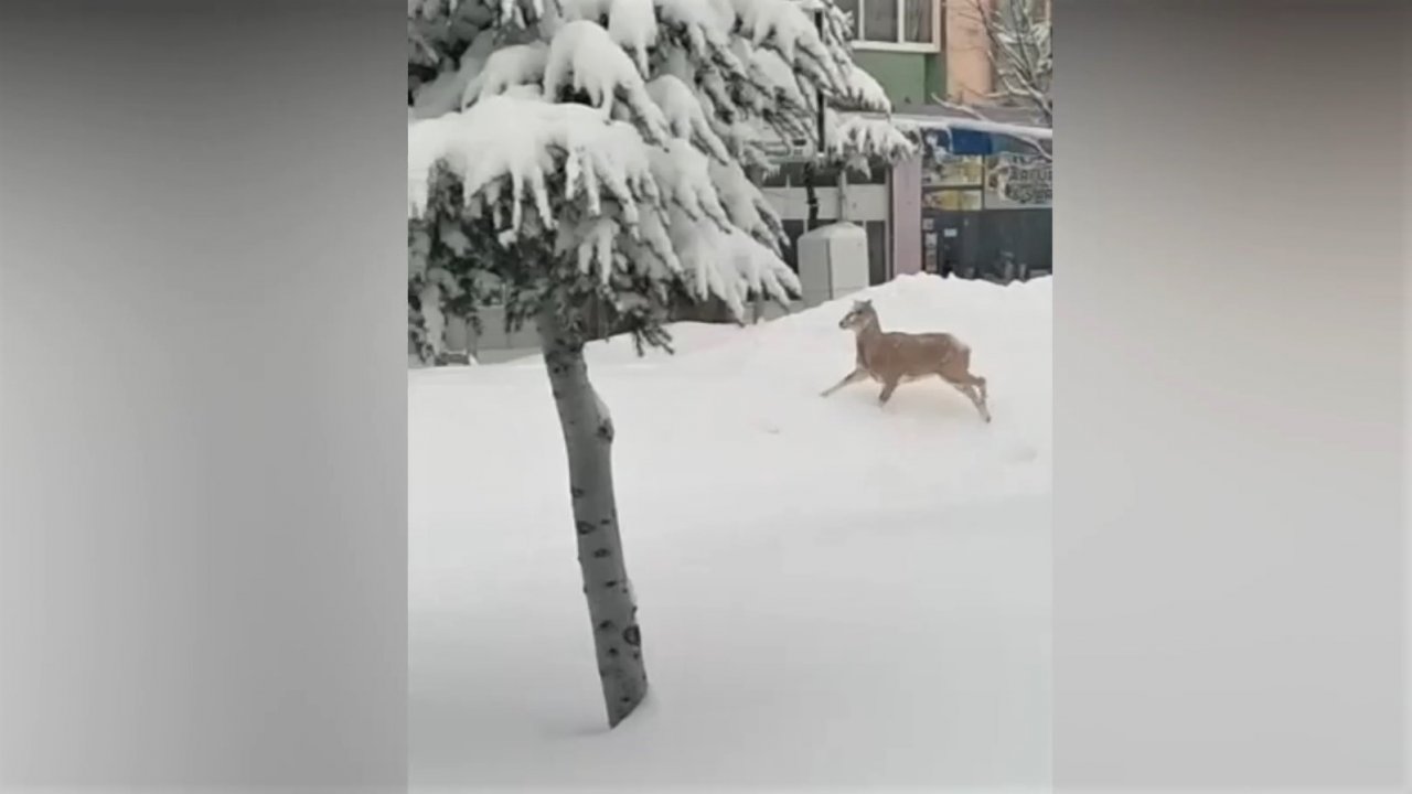 Nurhak’ta aç kalan dağ keçisi şehir merkezine indi