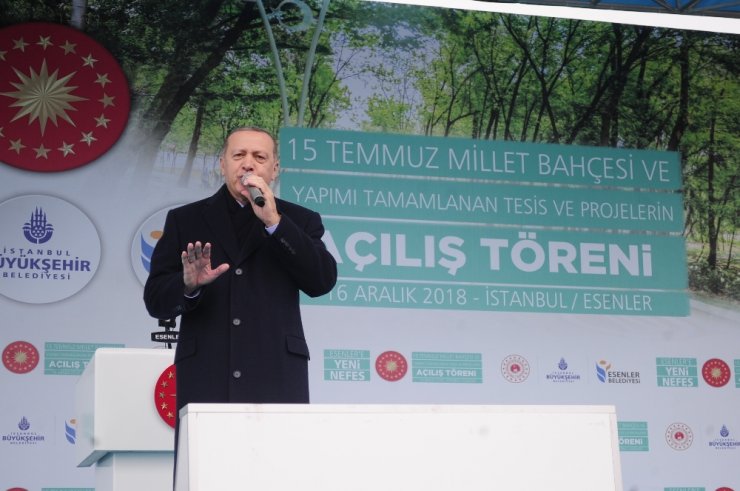 Cumhurbaşkanı Recep Tayyip Erdoğan, Esenler'de yapımı tamamlanan 15 Temmuz Millet Bahçesi açılışına katıldı. Açılış töreninde konuşan Erdoğan, İstanbul'un önemini değinerek, "600 yıldır bizim olan bu şehri bize çok görenler olduğunu biliyoruz. Ülkemize milletime yönelik husumetlerin altındaki sebeplerin en başında gelenlerden biri İstanbul'dur. İstanbul'a sık sıkıya sahip çıkarsak, ülkemizin geleceğine de o derece katkı yaptığımızı biliyoruz. AK Parti döneminde hayata getirdiğimiz dünya çapındaki projelerle Türkiye'nin tamamını büyüttük" ifadelerini kullandı.