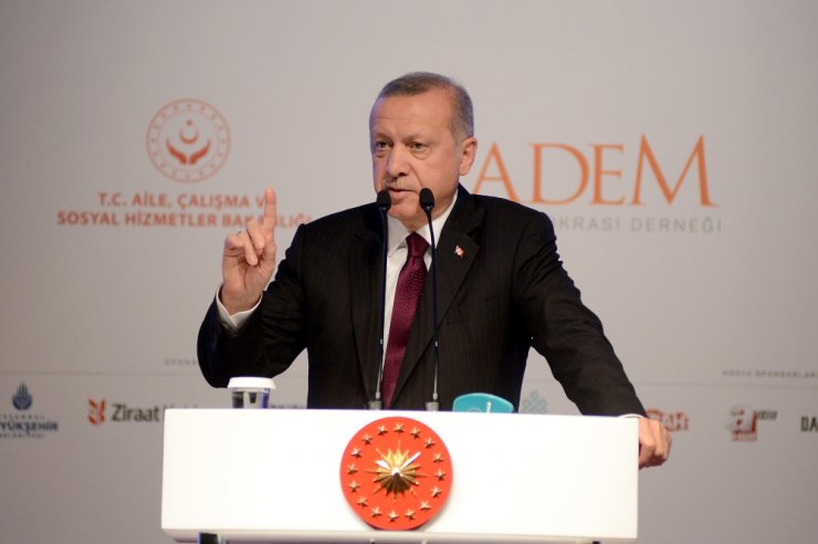 Adalet kavramının insanlık tarihi boyunca hep peşinde koşulan bir değer olduğunu söyleyen Cumhurbaşkanı Erdoğan, "Adalet herkese hakkını vermek demektir. Bir şeyi herkese eşit şekilde dağıtmak aynı şekilde davranmak anlamına gelmiyor. Büyükle küçüğü aynı terazide tartamazsın. Güçlüyle zayıfı aynı yarışa sokamazsın. Bazıları eşit eşit diyor da. 100 metreyi kadın erkek aynı şekilde mi koşturacağız. Hadi eşitiz. Erkekle bayan 100 metreyi koşsunlar bu adalet olur mu, olmaz. Kadın kadına koşar, erkek erkekle koşar. Yaradılışa, fıtrata uygun olan da budur. Dünyanın zalimle mazlumu aynı dairede tutamazsın. Mevlana Hazretlerinin "Her şeyi yerli yerine koymazsak, koymak zulüm ise bir şeyi olmaması gerektiren yere yerleştirmektir" tanımını önemli görürüm. Dünyanın hiçbir yerinde kadınla erkeği her anlamda eşit tutarak elde edilmiş bir adalet yoktur. Önemli olan heri iki cinsin öne çıkan hususların en ideal şekilde değerlendirerek, hakların adil bir şekilde dağıtımını sağlamaktır. Uzun yıllar ülkemizi esir alan ideolojik tartışmalarda kadının hep bir sembol olarak kullanılması bizi rahatsız etmiştir. Milletimizin değerlerine, kültürüne, tarihine düşmanlıklarını alenen ifade edemeyenler husumetlerini genç kızlarımız, annelerimizin başörtüleri üzerinden sahaya yansıtmaya çalışmışlardır. Tek parti devrinden başlayıp yakın zamana kadar süren bu tartışma Türkiye'ye çok fazla enerji ve zaman kaybettirdi. Kızlarımızı okula, sosyal hayata kazandırmak yerine başörtülerini bahane ederek kamudan dışlamaya yönelenler milletimizden hak ettikleri cevabı hep almışlardır. Türkiye o günleri geride bıraktı" dedi.
