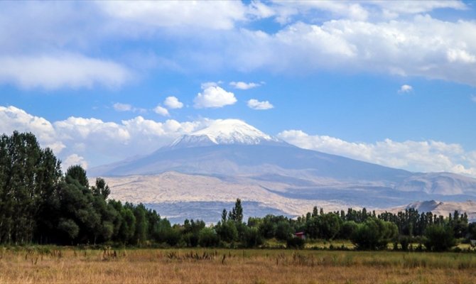 Iğdır ile Ağrı arasında yer alan, 5 bin 137 metrelik rakımıyla ülkenin en yüksek dağı olan ve "Türkiye'nin çatısı" şeklinde nitelendirilen Ağrı Dağı'nın yaklaşık 4 bin rakımından zirveye kadar olan bölümü, kar nedeniyle beyaza büründü.