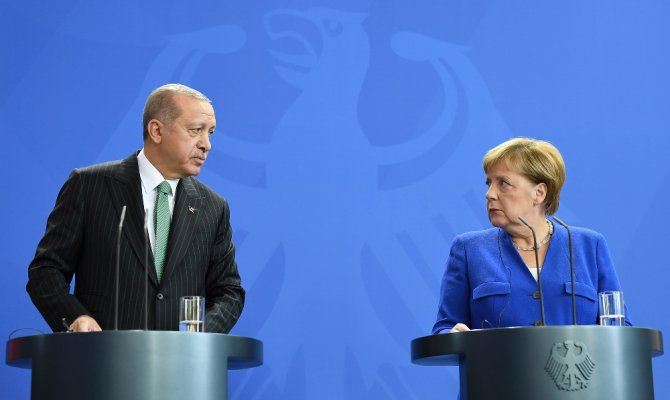 Artan korumacı ticaret eğilimlerinin dengelenmesi için, kurallar temelli sistemin desteklenmesi hususunda Almanya ile ortak bir tutum içerisinde olduklarını belirten Erdoğan, "Ticari yaptırımların siyasi hedeflerde kullanılması, uluslararası güvenliğe de zarar verecektir. Türk ekonomisinin sağlam temeller üzerinde kurulu olduğunu Merkel'e ifade ettim. Dönemsel dalgalanmaların tedbirler sayesinde sınırlı kaldığını ifade etmek isterim. Bizler Almanya ile derin ekonomik bağları önemsiyor, daha da gelişmesini istiyoruz. Alman hükümetinin de bu yöndeki tutumu ve vermekte olduğu mesajları değerli buluyoruz. İki ülke ilişkilerini özel kılan en önemli unsurlarından biri Almanya'da 3,5 milyona varan soydaşlarımızın varlığıdır. Vatandaşlarımızın entegrasyonunu teşvik ediyoruz. Sosyal ve ekonomik alanda, eğitim öğretimde insanlarımızın tam fırsat eşitliğinden yararlanması bu süreci hızlandıracaktır" ifadelerine yer verdi.