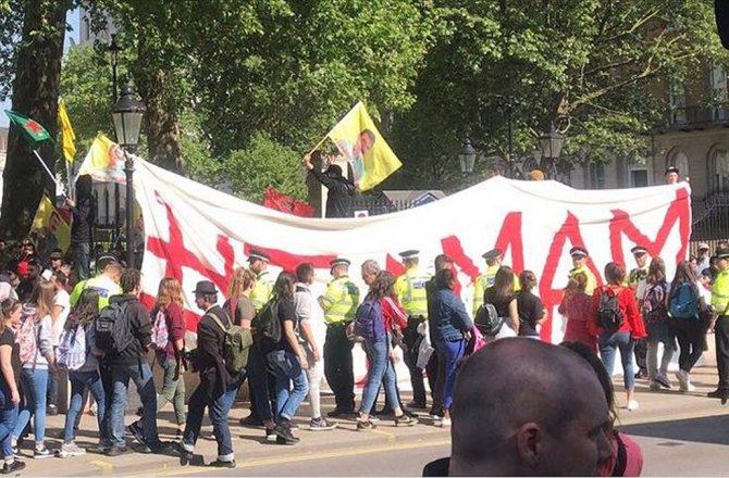 PKK YANDAŞLARI LONDRA'DA 'TAMAM' PANKARTI AÇTI