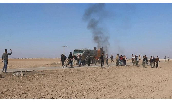 YPG/PKK yandaşları Rus askeri aracına molotofkokteyli ile saldırdı