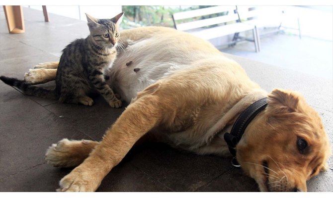 Annesinin terk ettiği kediyi Tarçın emziriyor