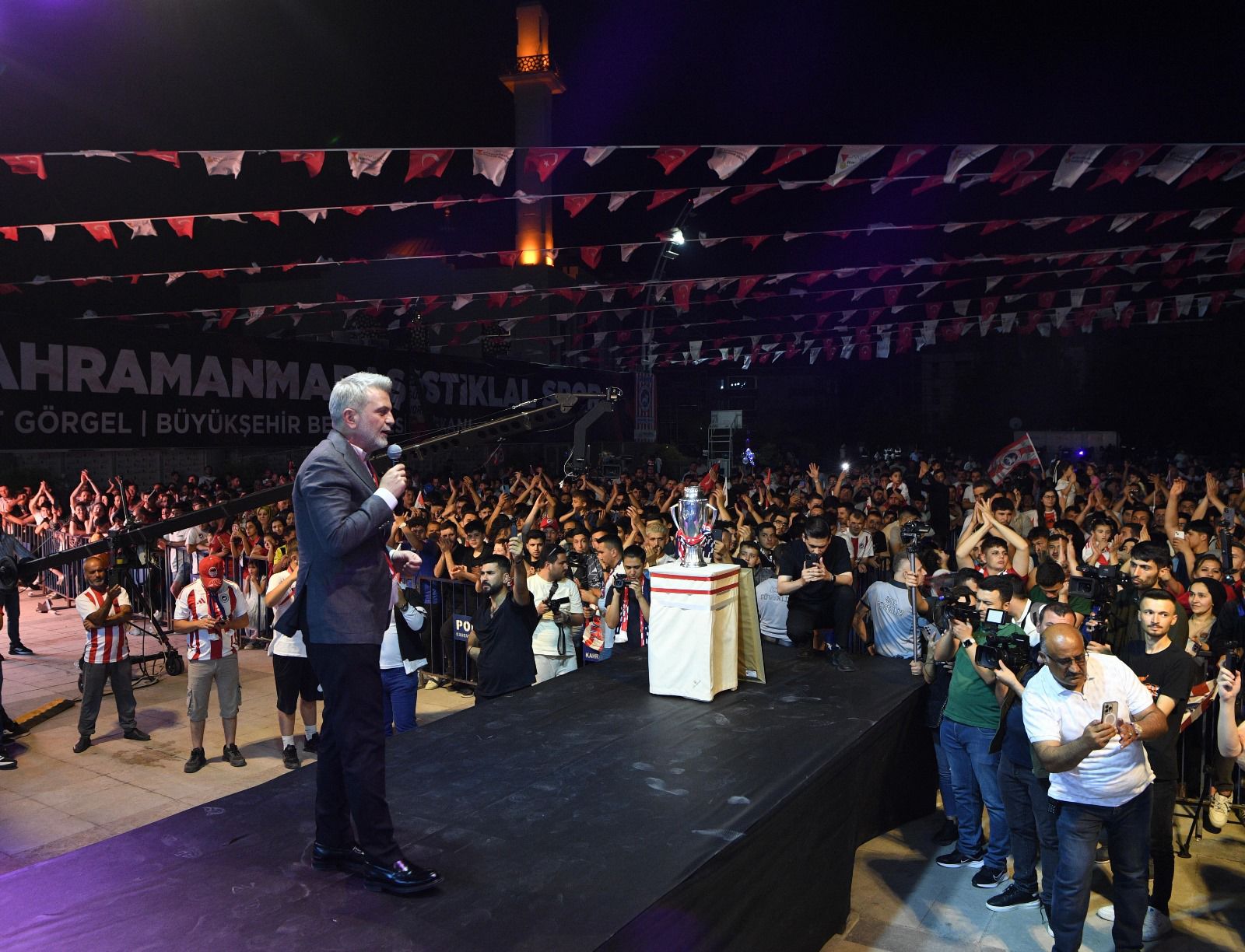 Milli İrade Meydanı’nda düzenlenen şampiyonluk programında, futbolcular ve teknik heyet sahneye tek tek davet edilerek taraftarları selamladı. Şampiyonluk kupası ise, görkemli bir havai fişek gösterisi eşliğinde taraftarlara tanıtıldı. Binlerce Kahramanmaraşlının ellerinde meşaleler, bayraklar ve tezahüratlar eşliğinde kutlamalara katılması, şehrin futbol tarihinde unutulmazlar arasına girdi.