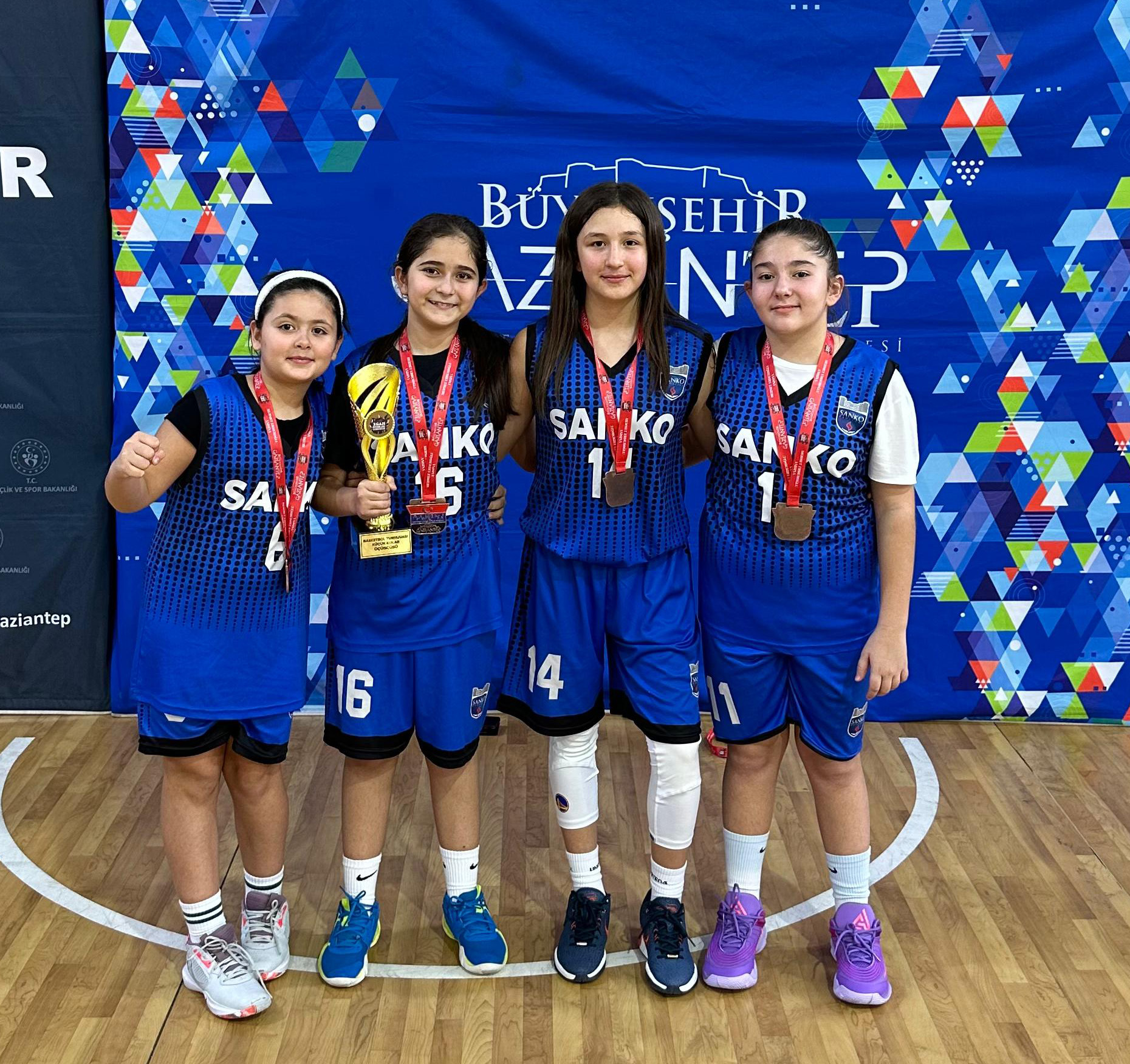 Ertuğrulgazi Spor Salonu’nda düzenlenen turnuvada Nehir Karaoğlu, Deniz Kızılateş, Betül Nakıpoğlu, Yağmur Diken ve Ada Palta’dan oluşan SANKO Okulları Yıldız Kız Basketbol Takımı birincilik kupasını kazandı.