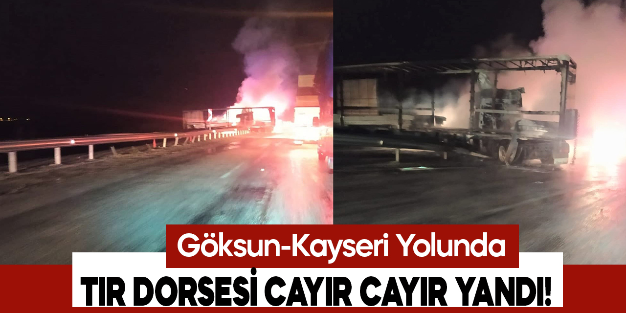 Göksun-Kayseri yolunda tır dorsesi alev alev yandı
