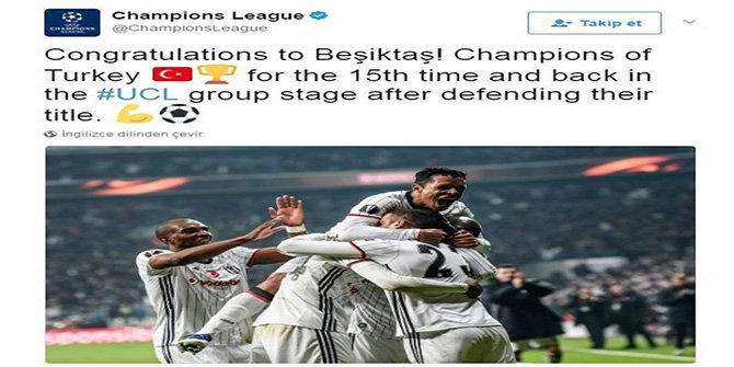 UEFA BEŞİKTAŞ’I TEBRİK ETTİ
