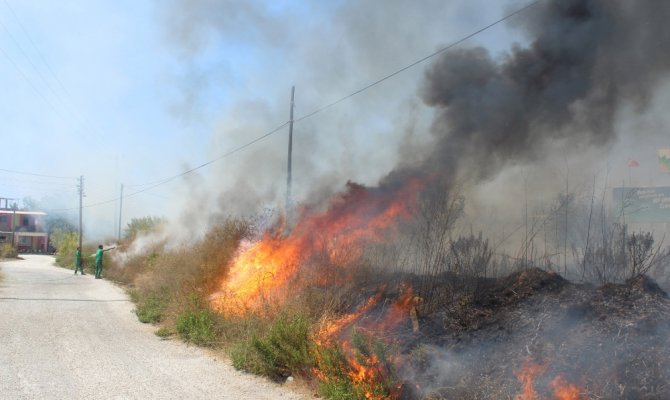 Akaryakıt istasyonunun arkasında bulunan kuru ot ve kamışlardan başlayan yangın rüzgarın etkisiyle kısa sürede etrafa yayılırken, akaryakıt istasyonu çalışanları, çevredeki ev ve iş yerindeki vatandaşlar da yangın söndürme tüpü, hortum ve kovalarla yangına müdahalede bulundu. Bazı vatandaşların da ellerindeki ağaç dallarıyla yangına müdahalede bulunduğu gözlendi.