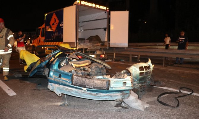 İstanbul Bayrampaşa'da bariyerlere çarpan otomobil ikiye bölündü. Kazada 3 kişi yaralandı.