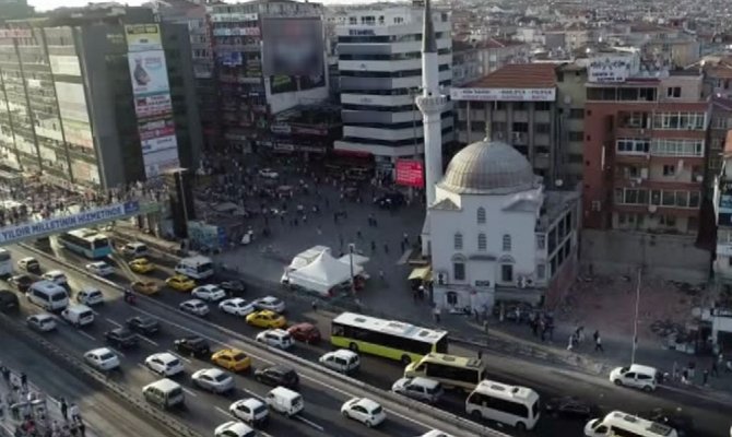 İstanbul Bahçelievler'de cami ile bitişik bina yıkılınca ortaya ilginç bir görüntü çıktı.
