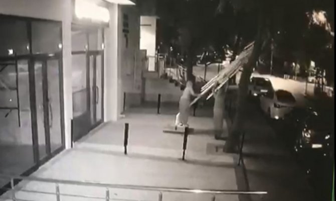 Görüntülerde karton arabasıyla gelen 2 kadın hırsız, kafeterya önündeki şemsiyeyi görünce duruyor. Bir süre sonra şemsiyenin yanına gelen hırsızlar inceleme yaptıktan sonra güçlükle yerinden çıkartarak yere deviriyor. Daha sonra uzaklaşan kadınlar dakikalar sonra geri gelerek yerdeki şemsiyeyi halterciler gibi yükleniyor. Şemsiyeyi yola götüren kadınlar arabaya yükledikten sonra uzaklaşıyor. Dakikalar süren hırsızlık esnasından yoldan çok kez de araç geçtiğini görülüyor.