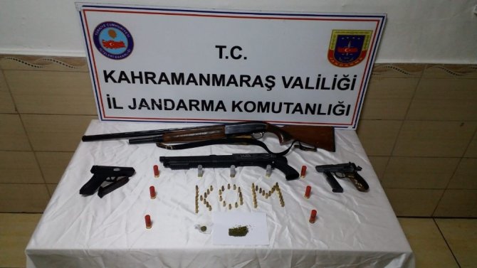 Elbistan İlçe Jandarma Komutanlığı ile Kahramanmaraş İl Jandarma Komutanlığı görevlilerinin, bir eğlence merkezinde yaptıkları aramada 2 adet ruhsatsız av tüfeği, 1 adet ruhsatsız tabanca ile bu silahlara ait çok sayıda fişek ve 1 de kuru sıkı tabanca ele geçirildi.