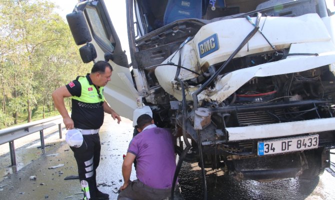 Düzce TEM Otoyolu Gümüşova rampalarında seğir halinde olan kamyona giren arı kaza yaptırdı. Arıdan kendini korumaya çalışan kamyon sürücüsü önünde giden TIR'a arkadan çarptı 1 kişi yaralandı.