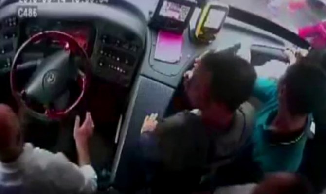 İstanbul Ümraniye'de halk otobüsü şoförü, yolun karşısına geçmek isteyen bir aileye yol verdi. Ancak yol verdiği yaya yumruk atarak otobüsün camını kırıp şoföre saldırmak istedi. Yolcuların araya girdiği olay güvenlik kamerasına yansıdı.