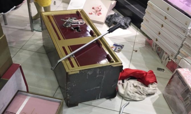 İçeriye giren polis ekipleri çelik kasanın yerde olduğunu ve kesici bir aletle delindiğini gördü. Ekipler kasanın yanında levye, tornavida, çekiç, sırt çantası, el feneri, bijon anahtarı ve şapka olduğu görmesi üzerine şüphelileri yakalamak için iş yerinde detaylı bir arama yaptı.