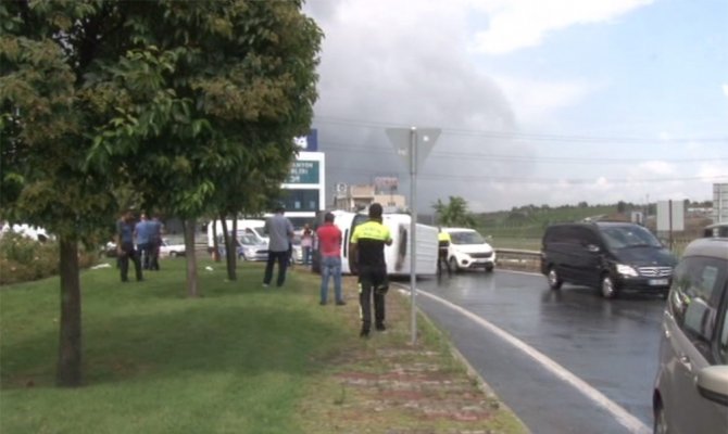 İstanbul Başakşehir'de virajı alamayan bir polis minibüsü devrildi. Kazada bir polis memuru ve yabancı uyruklu bir kişi yaralandı.