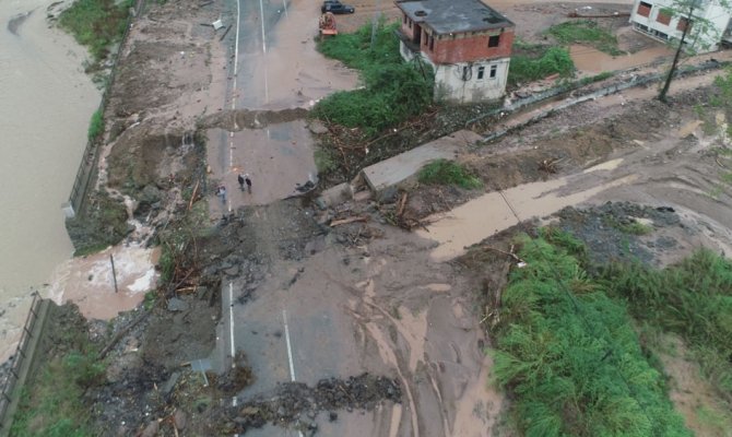 Trabzon'un Araklı ilçesinde yaşanan selin boyutu gün aydınlanınca ortaya çıkarken, selin boyutu da havadan görüntülendi.