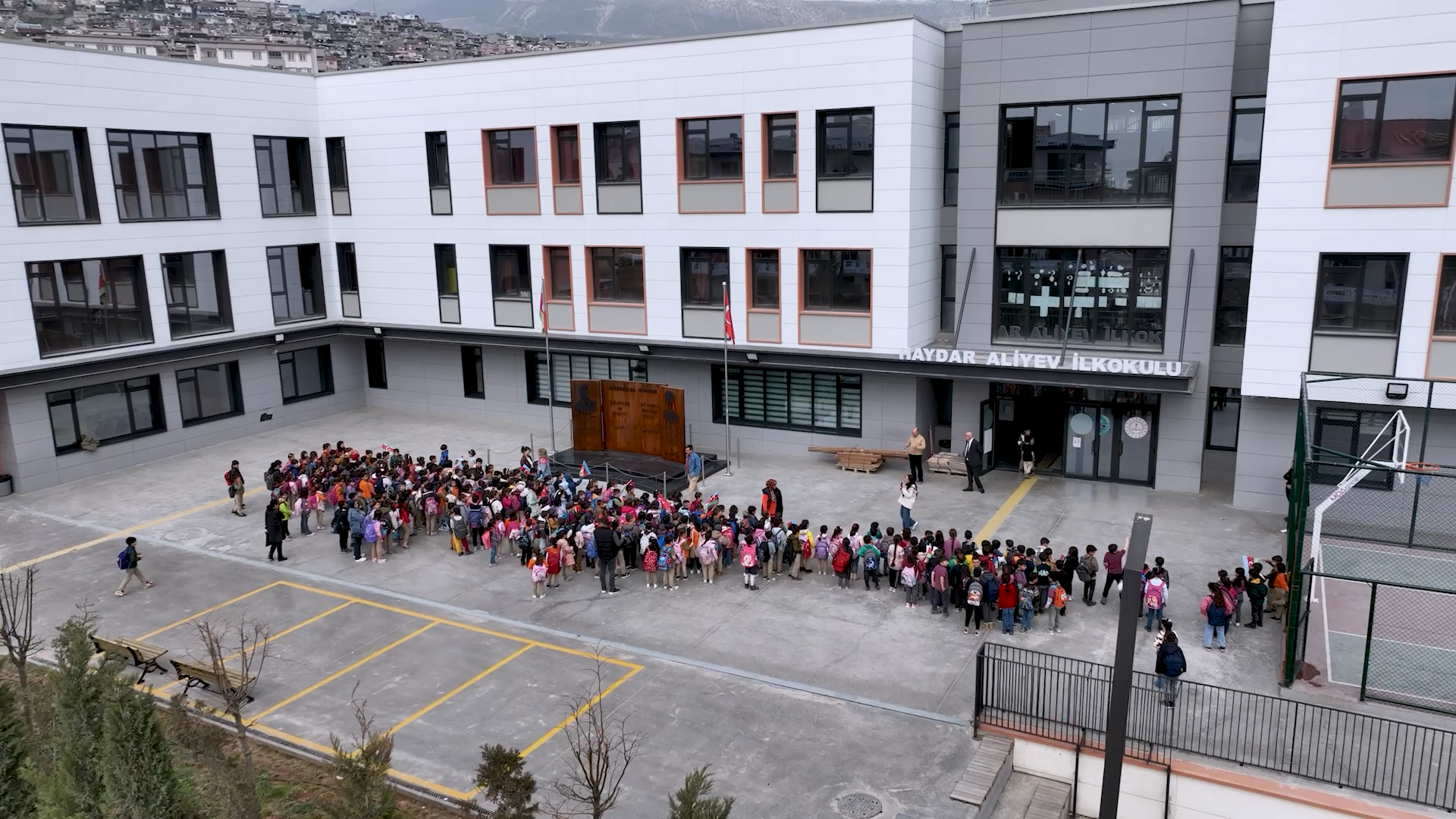 “Burası Kahramanmaraş’taki Haydar Aliyev İlkokulu… Asrın felaketinin ardından, afetlere dayanıklı, çocuklarımız için güvenli bir okul inşa ettik. Bugün o koridorlarda evlatlarımızın sevinci yankılanıyor.”