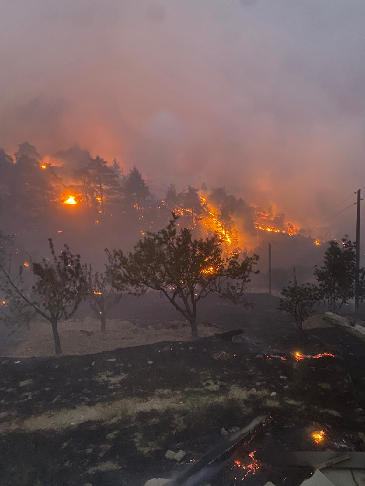 “Ilıca Bölgesi Çamlıbel Mahallesinde devam eden yangına 14 araç ve 50’ye yakın itfaiye personelimiz ve paydaş kurumlarımızla müdahale ediliyor.”