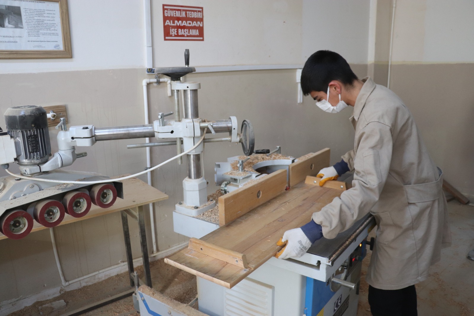 Bu kapsamda okulun atölyelerinde öğretmenlerinin nezaretinde Mobilya Alanı ve Metal Alanı’ndan 22 öğrenci çalışmaktadır. Öğrenciler yaptıkları bu uygulamalarla uzun yıllar hizmet verecek öğrenci sırası revizyonu yapmanın haklı gururunun yanı sıra hem mesleki bilgi ve becerilerini arttırmakta hem de aldıkları ücretlerle aile bütçelerine katkıda bulunmaktadır.