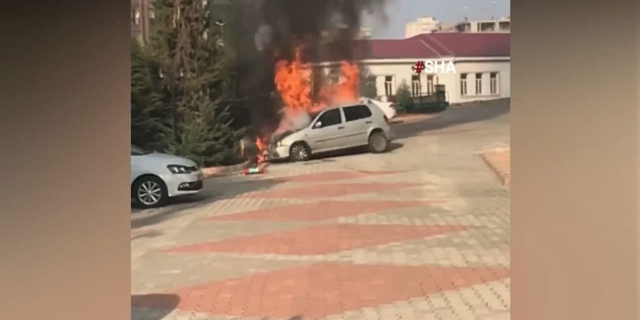 Kahramanmaraş'ta park halindeki otomobil cayır cayır yandı